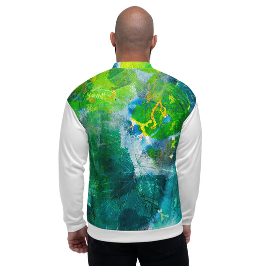 Leaf Explorer Unisex Bomber Jacket – Green Leaves