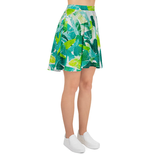Botanical Skater Skirt – Fresh Green Leaves & Earthy Accents